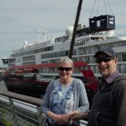 Um kurz vor sechs war heute morgen die Nachtruhe zu Ende. Wegen des dichten Nebels musste das Schiff das Nebelhorn benutzen. Nun herrscht die übliche Aufbruchshektik. Um 8:00 Uhr sollten alle aus den Kabinen raus. Wir haben dann gemütlich gefrühstückt. Zur Zeit werden noch die Koffer an Land gebracht und demnächst werden die ersten Gruppen